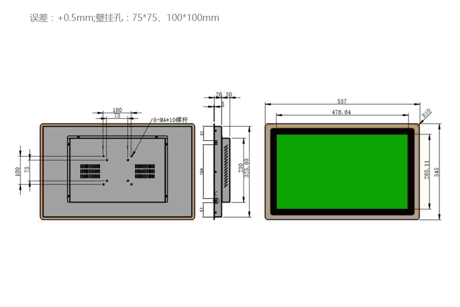 | 工作溫度 | -20℃-70℃ | 可視尺寸 | 476mm*268mm |