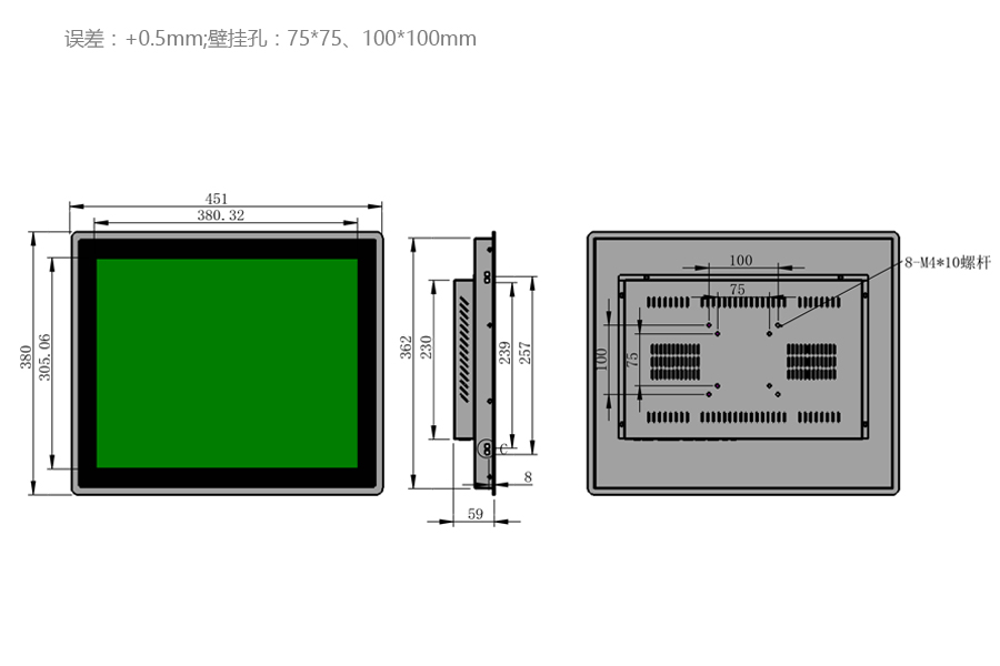 | 工作溫度 | -20℃-70℃ | 可視尺寸 | 380mm*305mm |