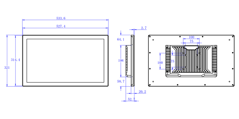 | 工作溫度 | -10℃-60℃ | 可視尺寸 | 527.4mm*314.4mm |